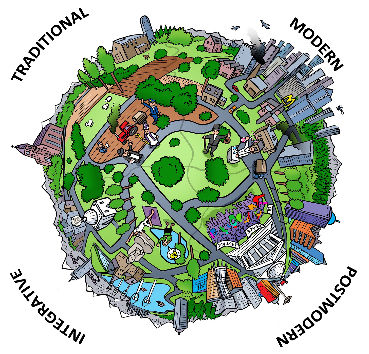 These three broad, widely-recognized, ideal-typical worldviews — traditional, modern, and postmodern ones7 — have the potential to powerfully illuminate the political dynamics in our world. It is these worldviews I’ll therefore draw on here.
